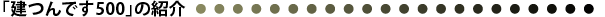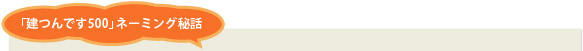 「建つんです500」というネーミングはお客様と話している内に何回もお客様が「本当に500万で家が建つの?」と何度となく言われる中で、「建ちます、建ちます、必ず建つんです」という受け答えからこのネーミングが生まれ、2005年11月に特許庁に商標登録をいただきました。 |
